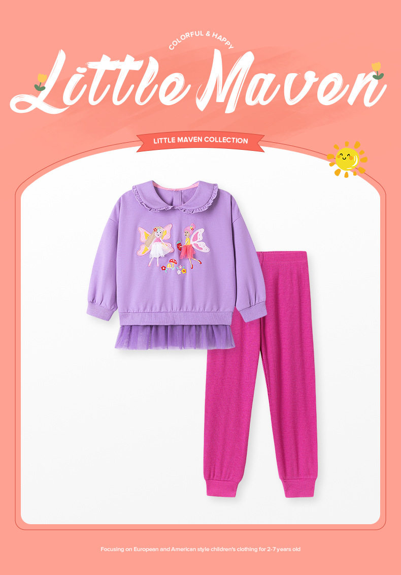 Fabbrica abbigliamento bambini, set bambine cartone animato con applicazione, set bambini carino autunno