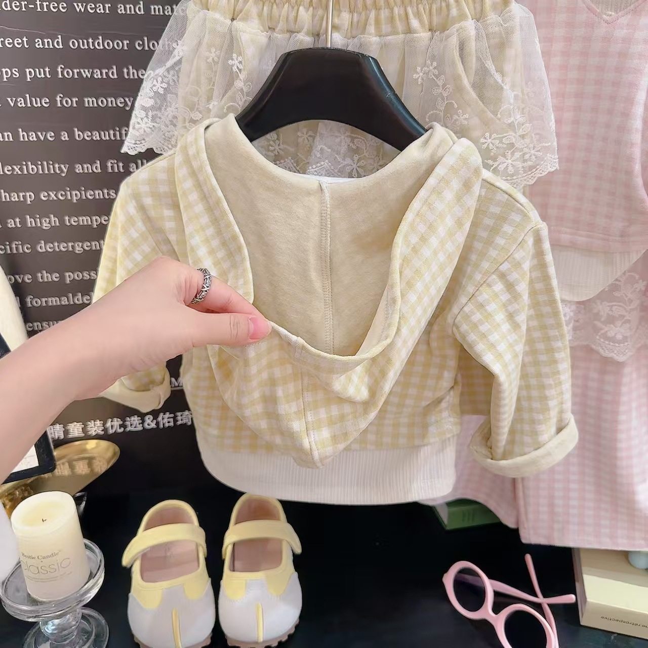 Mädchen Cartoon-Zweiteiliges Set Herbstneuheit, Baby Netz-Patchwork-Hoodie & gestapelte Leggings Mädchen Cartoon-Zweiteiliges Set Herbstneuheit, Baby Netz-Patchwork-Hoodie & gestapelte Leggings