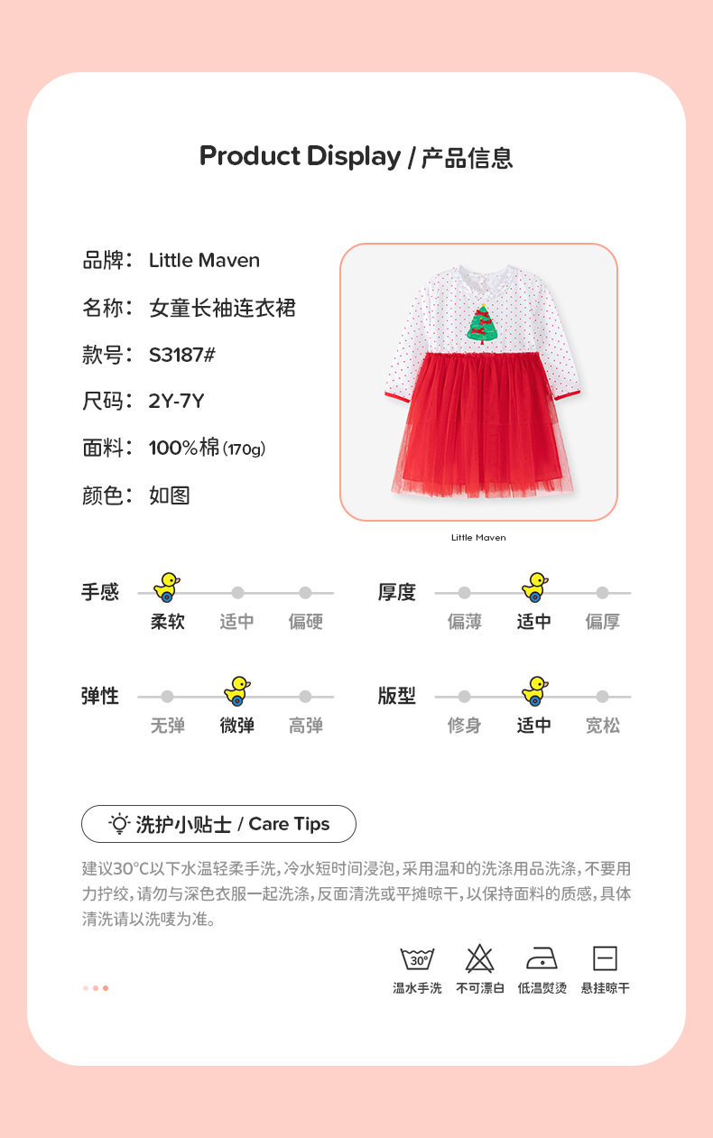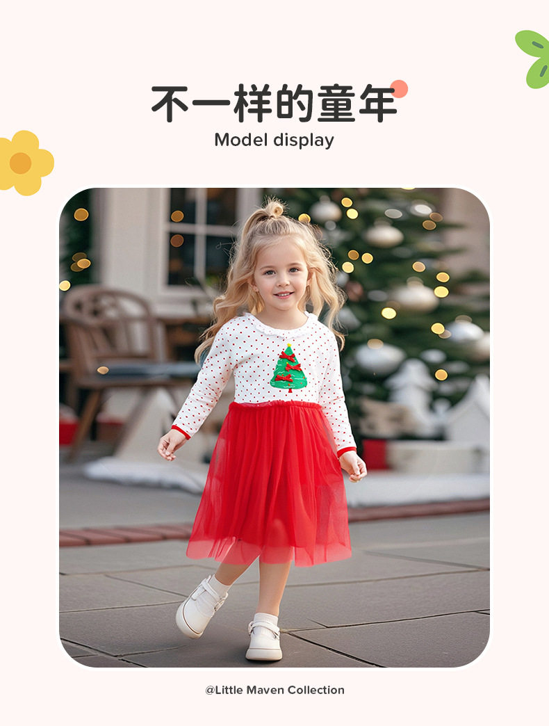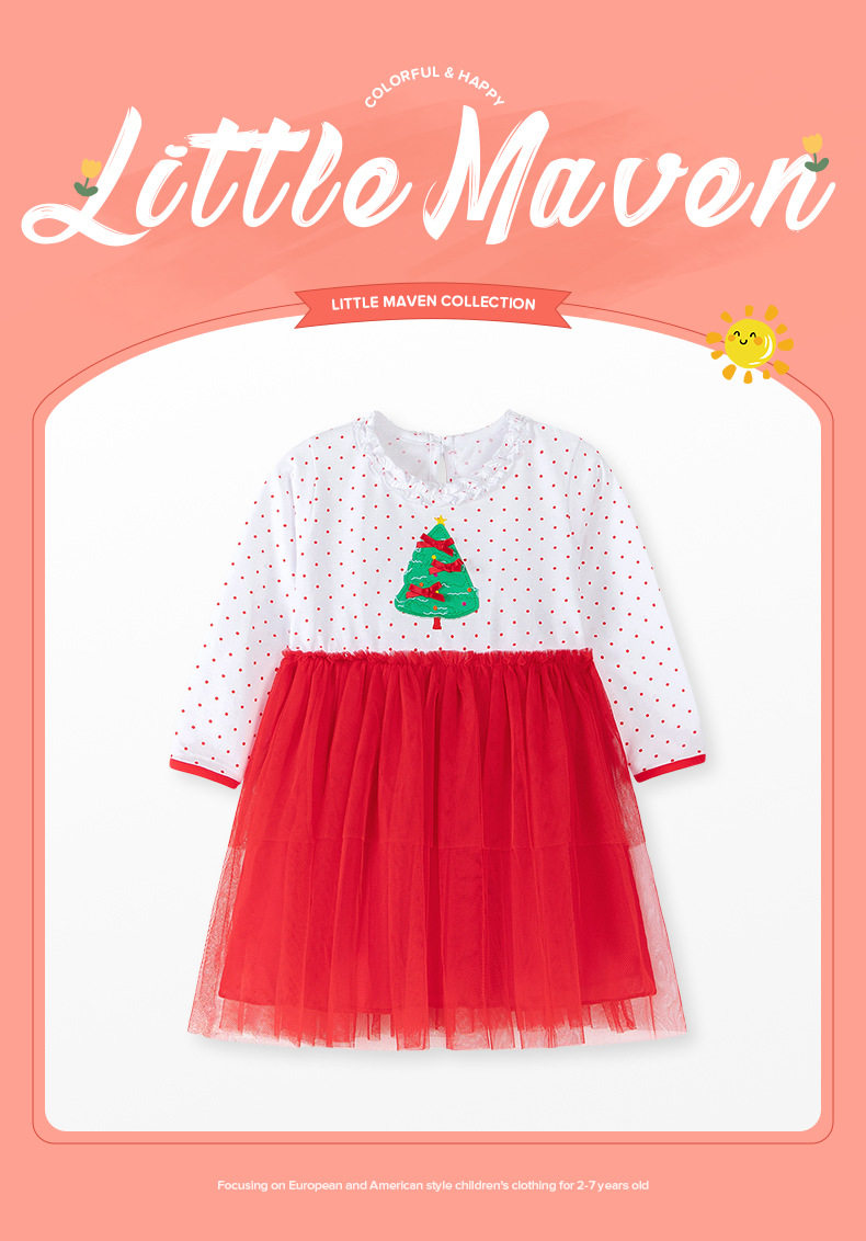 Christmas Style Girls' Dress, Autumn Mesh Kids' Dress, Cute Baby Dress