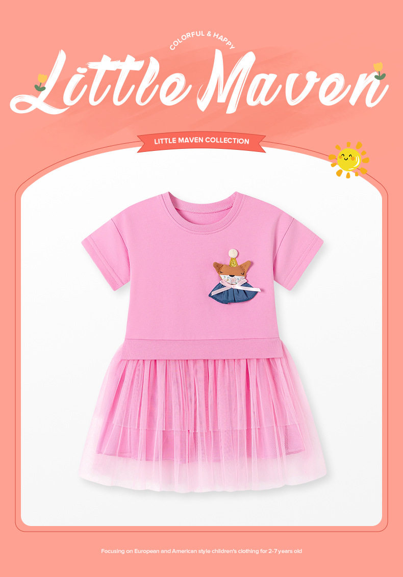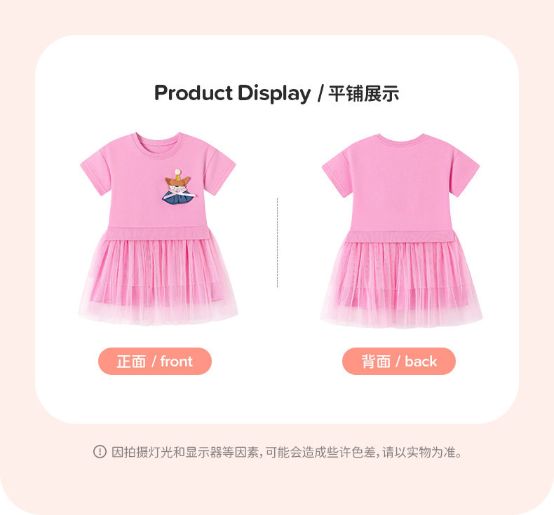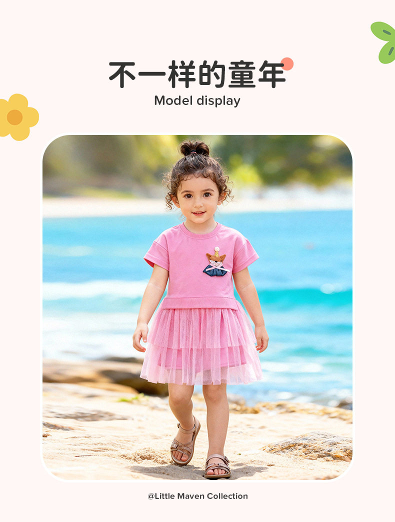 Gaun lengan pendek mesh anak perempuan musim panas, gaun anak gaya