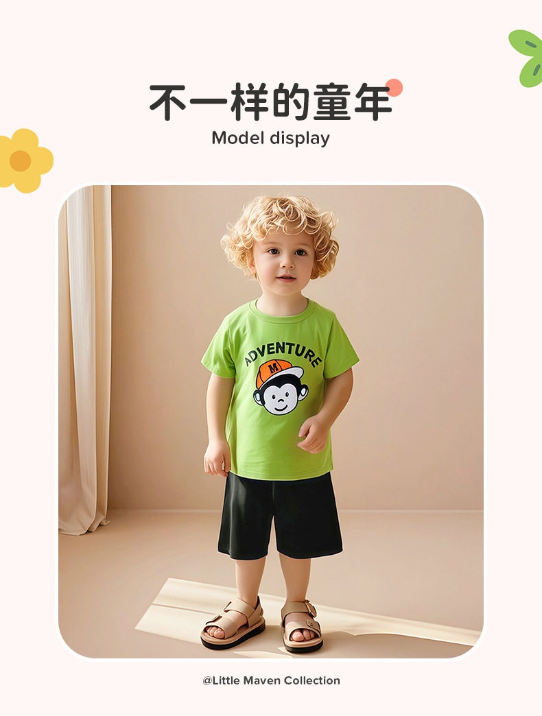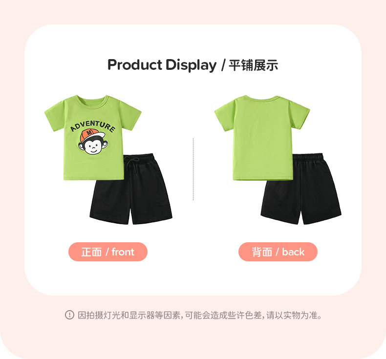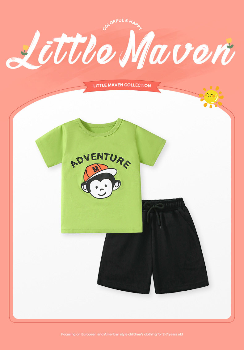 Set due pezzi a maniche corte ragazzi d'estate su misura, set bambini cotone puro, abbigliamento sportivo bambini