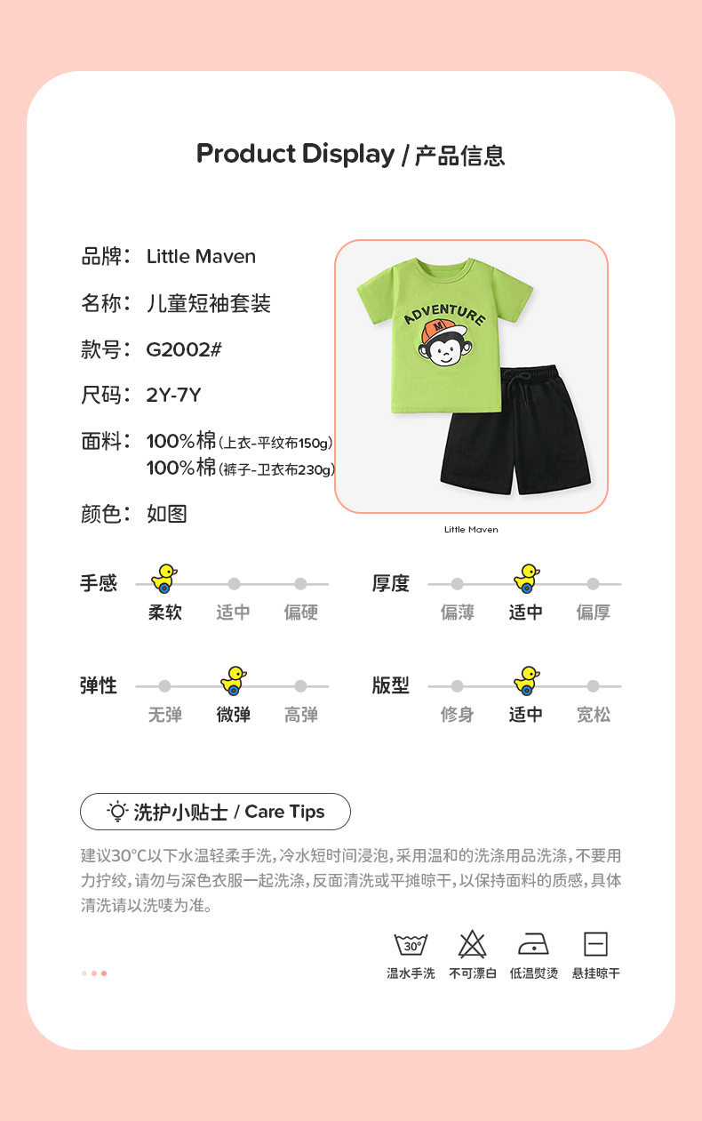 Fornitura fabbrica abbigliamento bambini, set bambini maniche corte estivo, set ragazzi cotone cartone animato