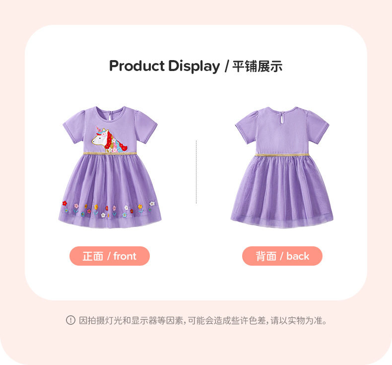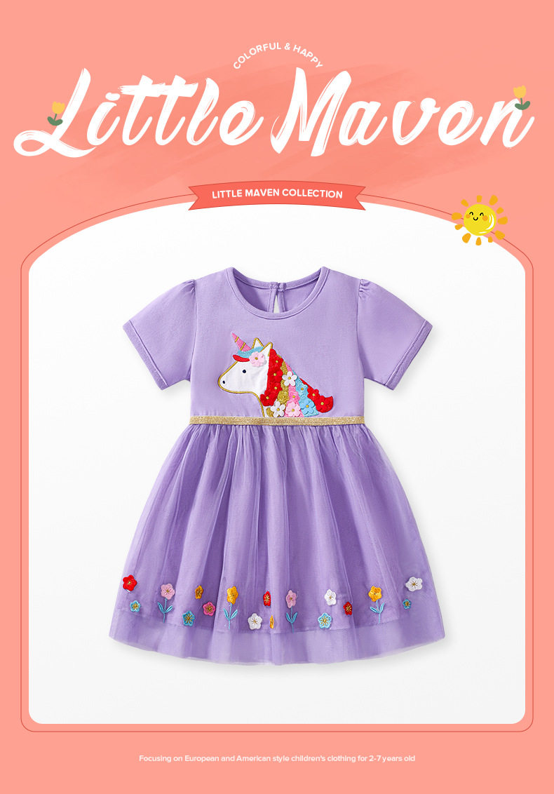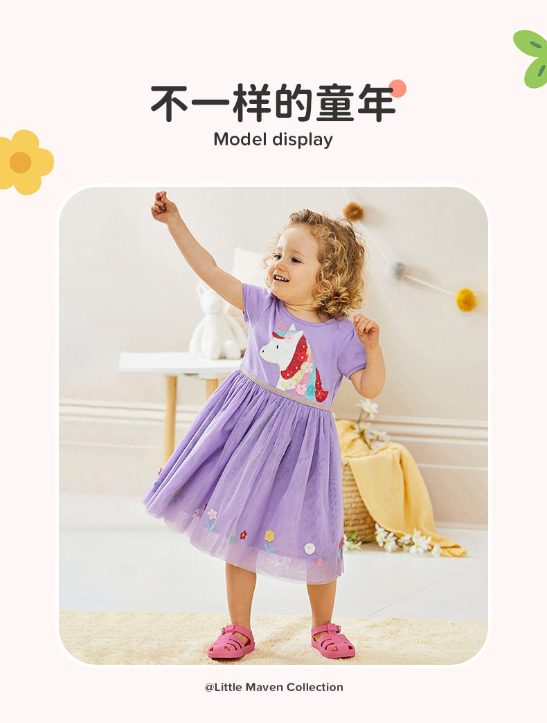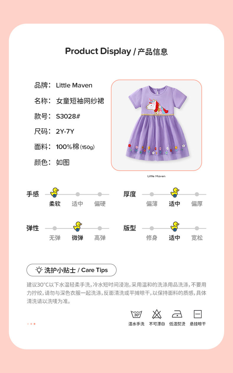 Kids' Summer Short-Sleeve Mesh Princess Dress, Cute Cotton Dress