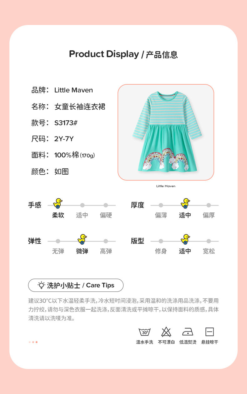 Style Girls' Dress Wholesale, New Autumn Long-Sleeve Striped Baby Cotton Dress