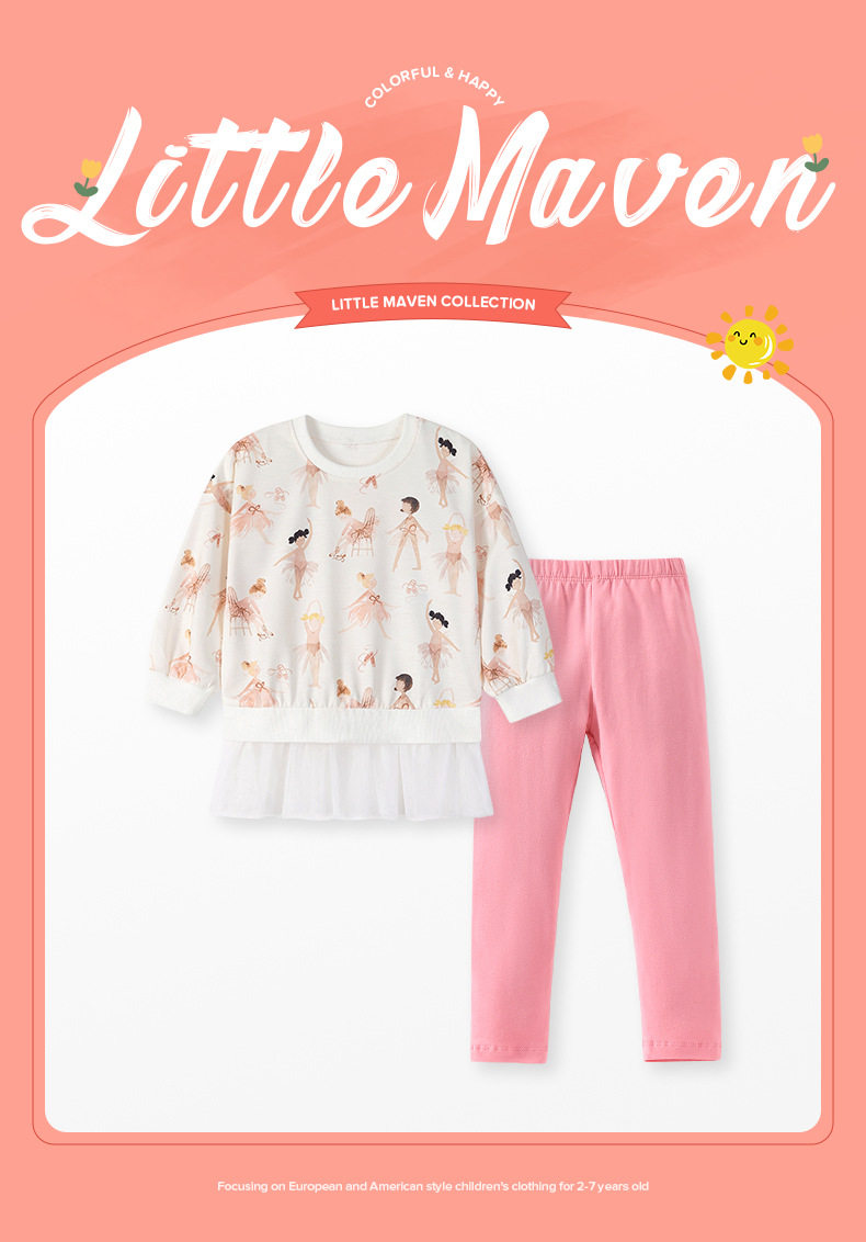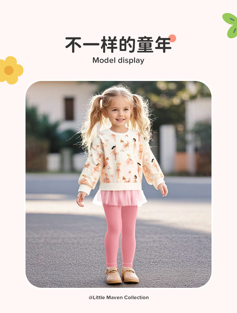 Girls' Cartoon Set, New Autumn Baby Mesh Patchwork Hoodie & Stacked Leggings Two-Piece Outfit