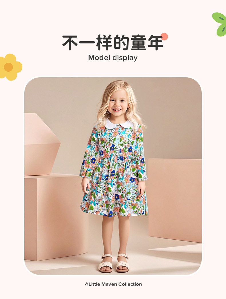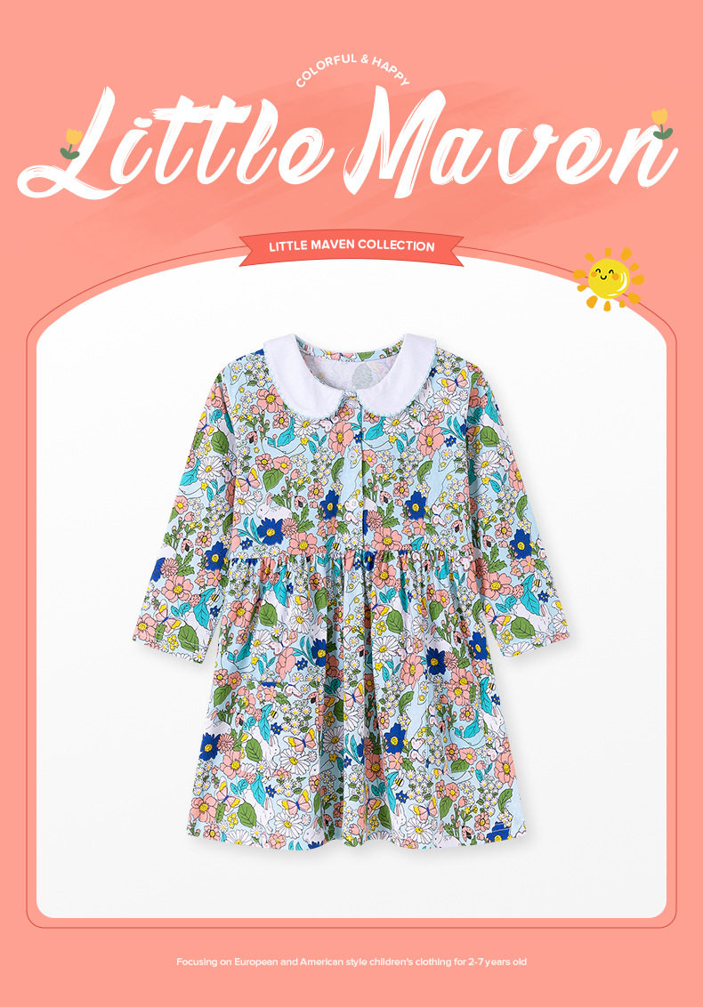 Girls' New Autumn Floral Dress from Kids' Wear Manufacturer, Cute Dress Wholesale