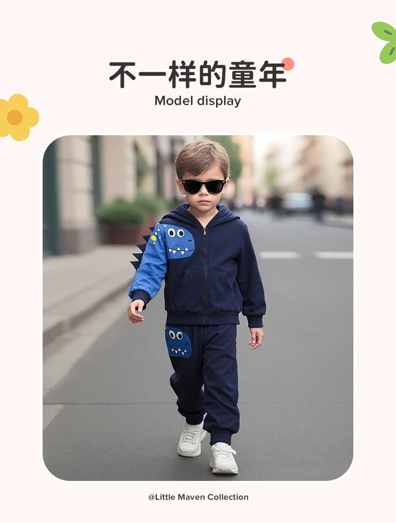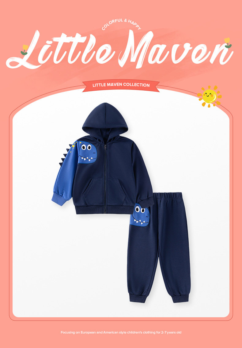 Vendita all'ingrosso set ragazzi, set bambini con cappuccio autunno, set felpa manica lunga cartone animato stile