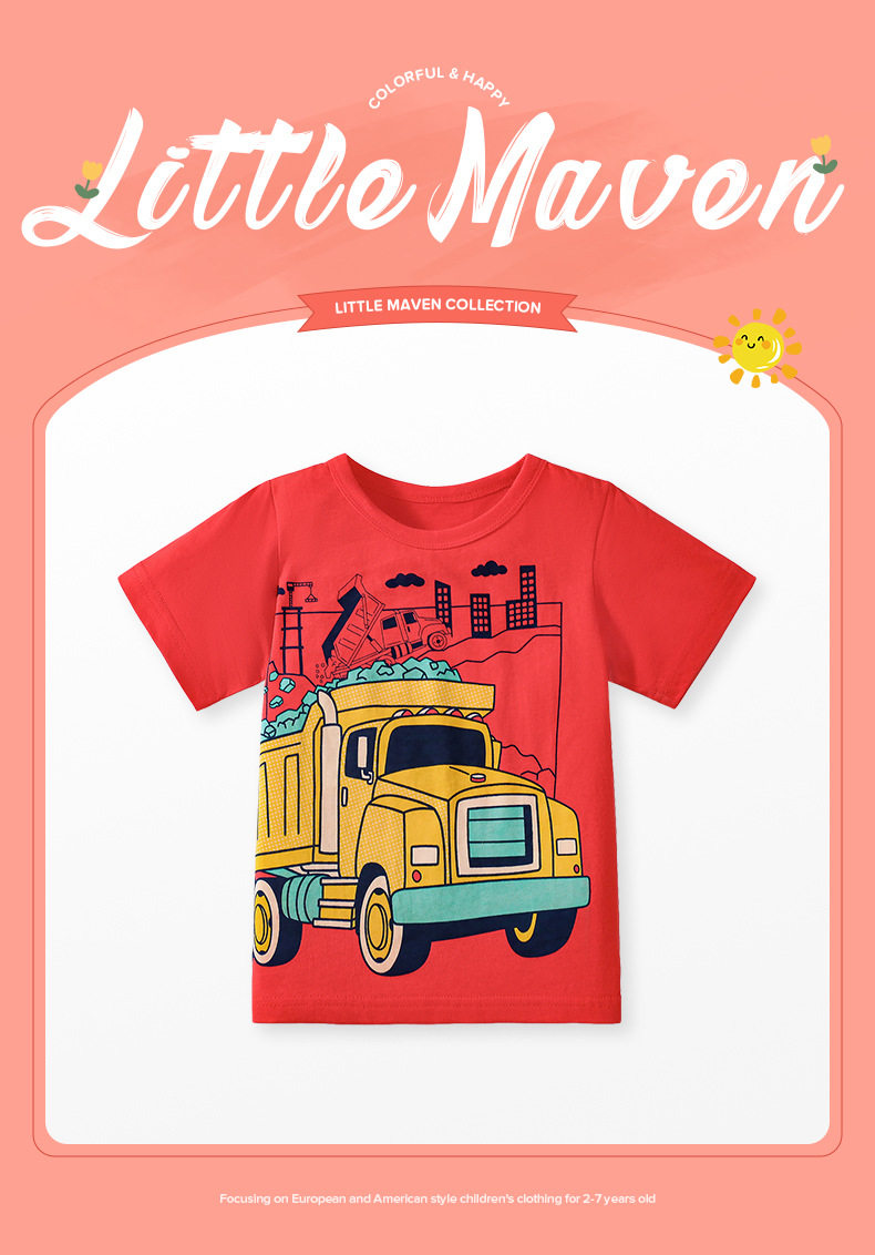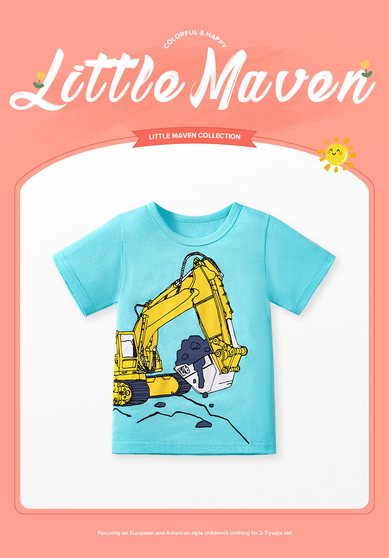 Boys' Summer Cartoon Car Cotton Short-Sleeve T-Shirt Three-Pack from Factory, Kids' Tee
