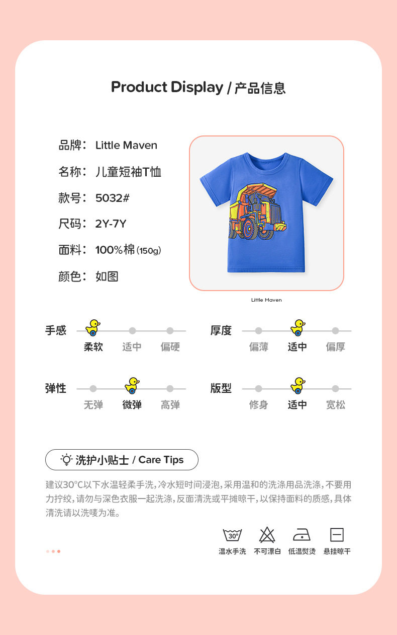 Girls' Summer Short-Sleeve T-Shirt Wholesale from Factory, Style Baby Top, Cartoon Cute Kids' Tee