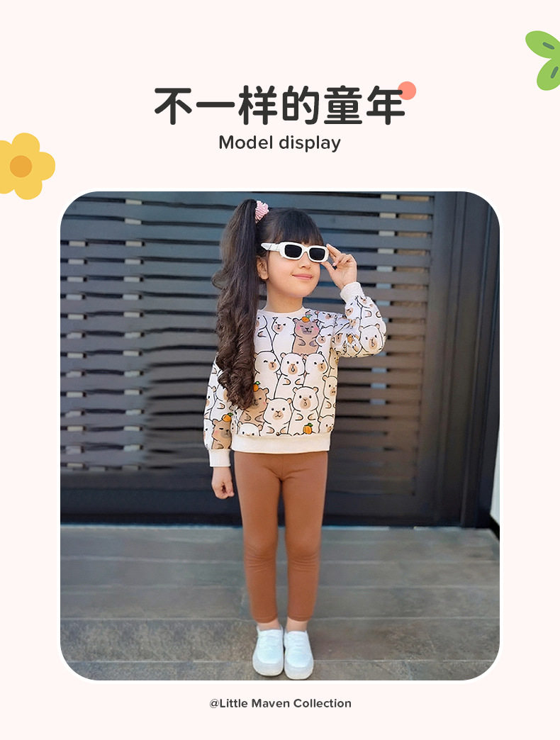 Girls' Cartoon Set, New Autumn Baby Mesh Patchwork Hoodie & Stacked Leggings Two-Piece Outfit