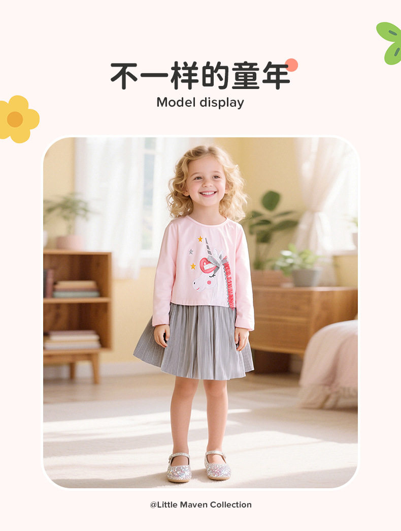 Abito bambine, nuovo abito bambini maglia patchwork autunno manica lunga