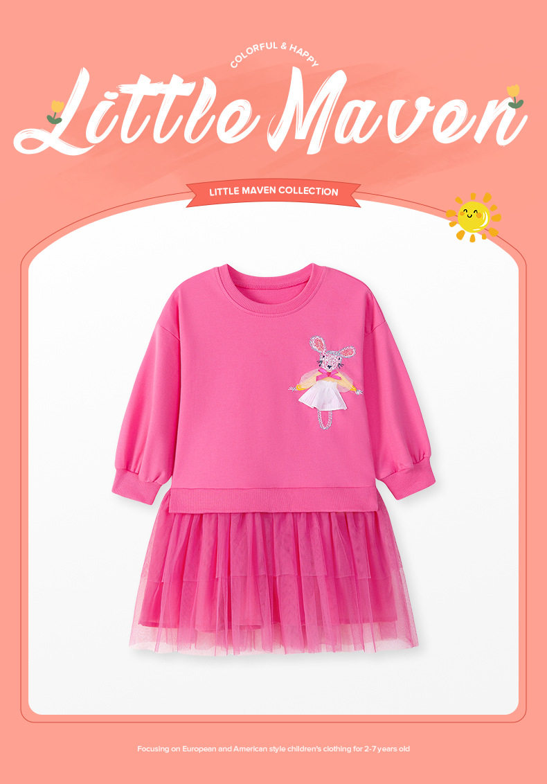 Girls' Hoodie Dress, [Style] Kids' Skirt, Autumn Tulle Long-sleeve Cartoon Kids' Dress
