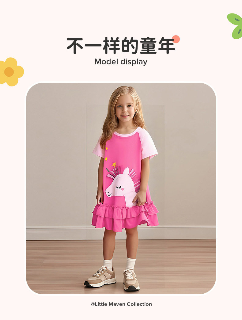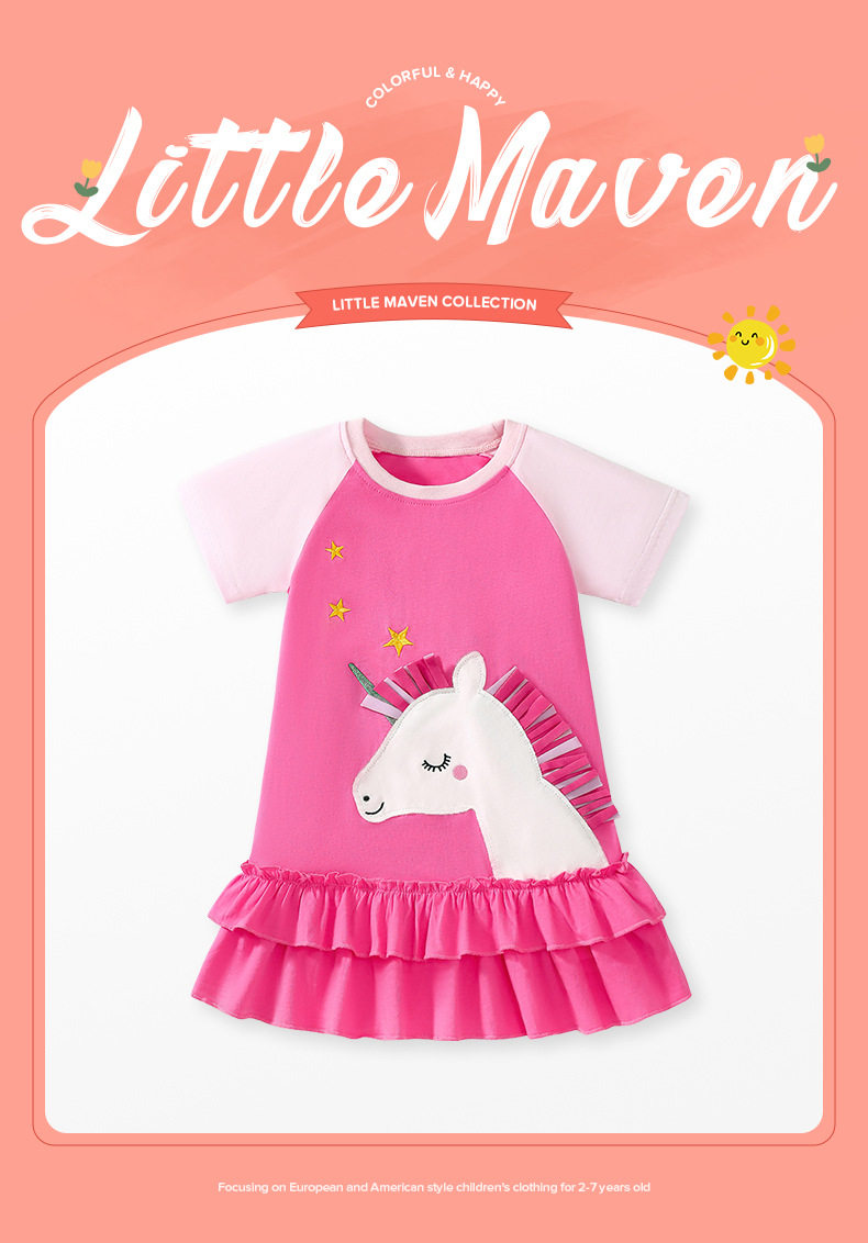Cute Kids' Dress, Summer Short-sleeve Girls' Dress, Cotton Cartoon Kids' Dress