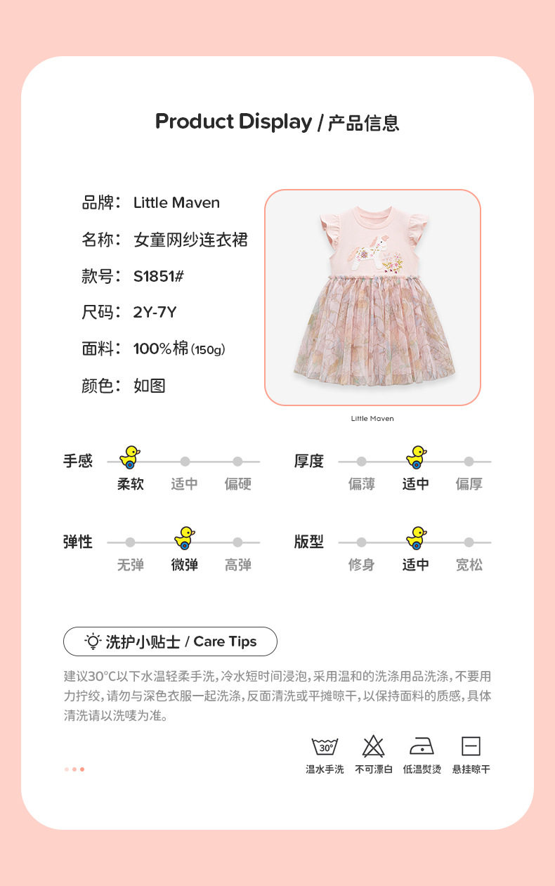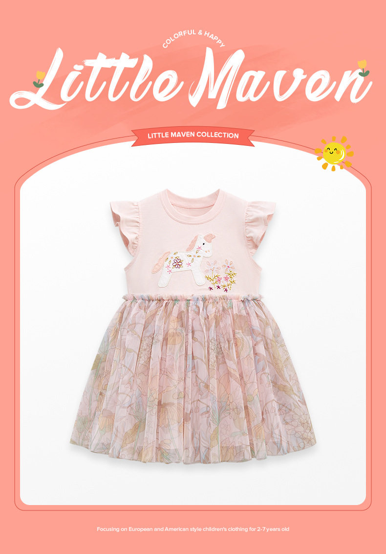Girls' Tulle Dress, Cotton Kids' Summer Skirt, Cute Animal Girls' Princess Dress