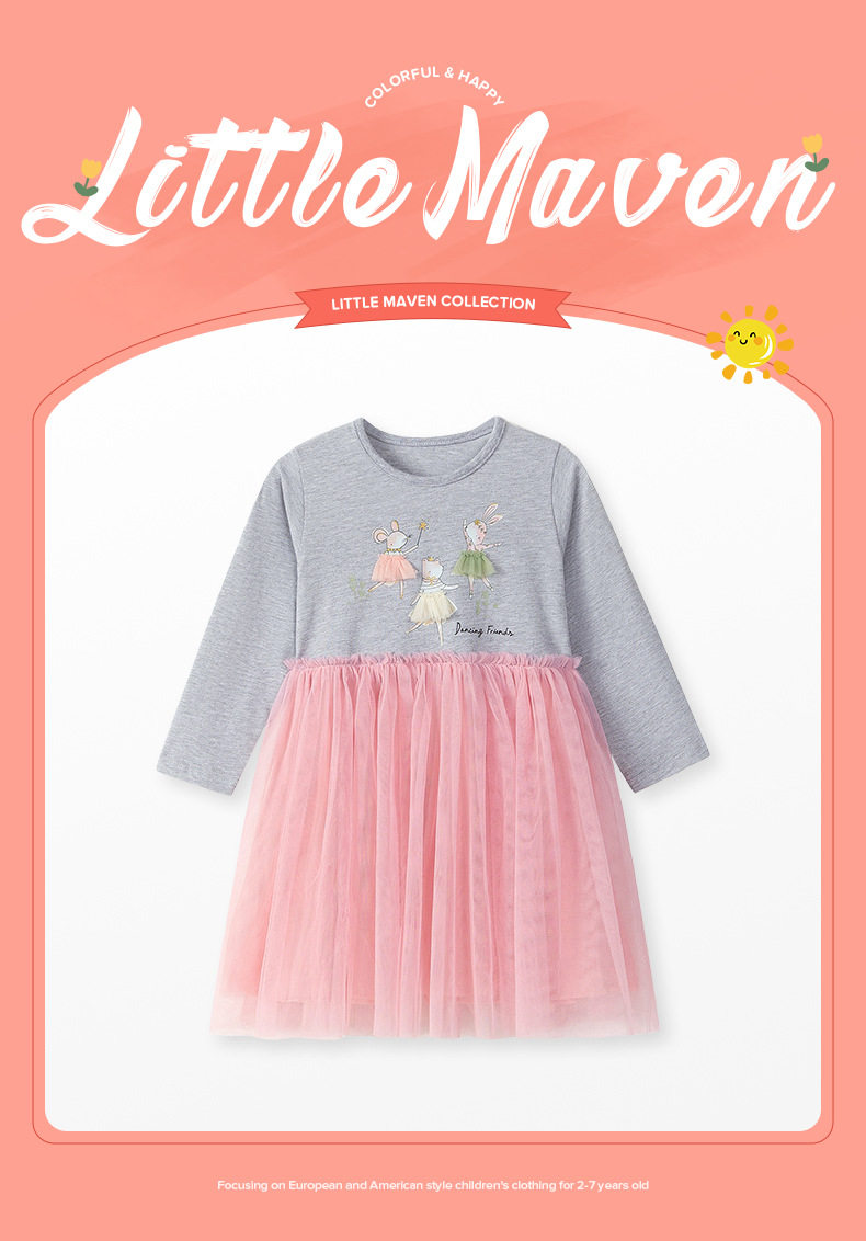 [Style] Girls' Dress, Autumn Tulle Princess Dress, Cartoon Cute Kids' Dress