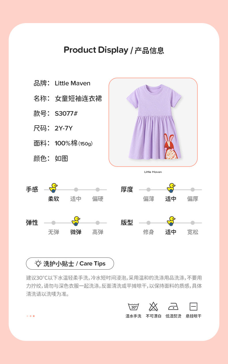 Kids' Clothing, New Kids' Dress, Cotton Girls' Princess Dress, Summer Short-sleeve Kids' Dress
