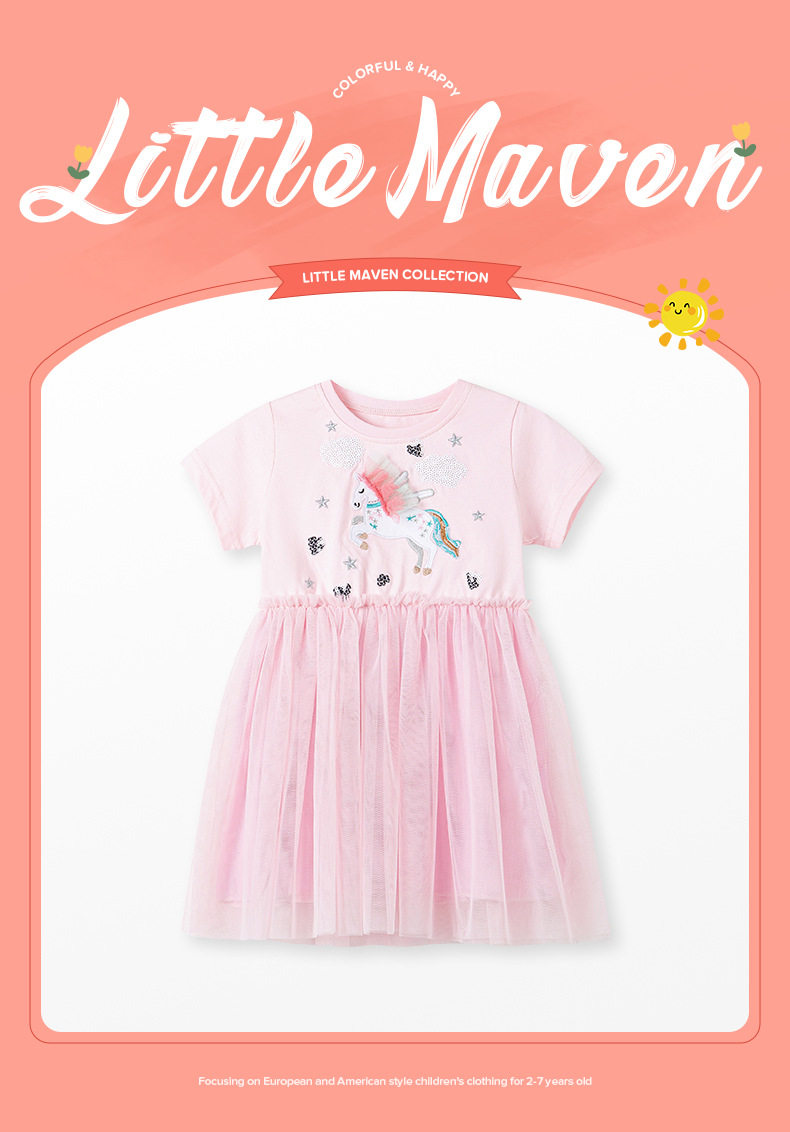 Girls' Tulle Princess Dress, Summer Cotton Short-sleeve Kids' Dress, Cute Kids' Dress