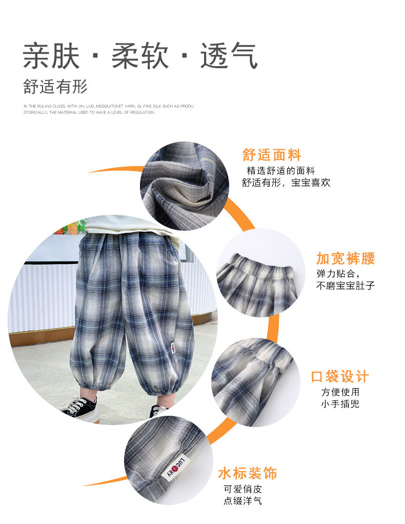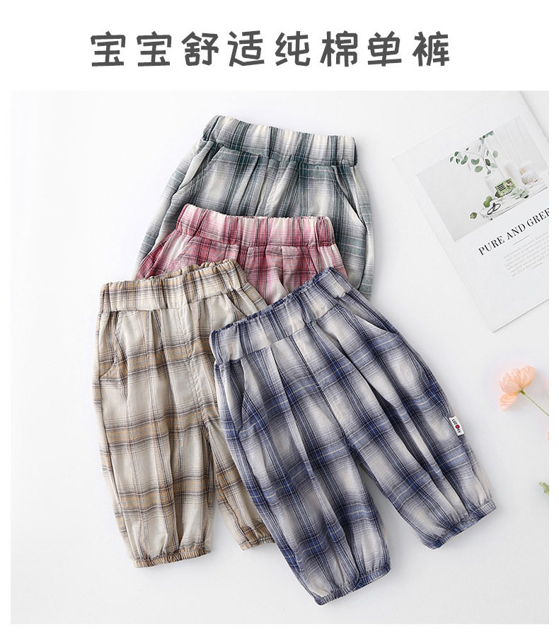 Lazy Style Retro Plaid Wide-Leg Pants, New Summer Elastic Waist Loose Mosquito-Proof Cropped Pants, Versatile Design
