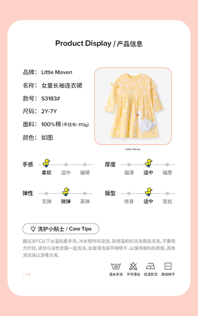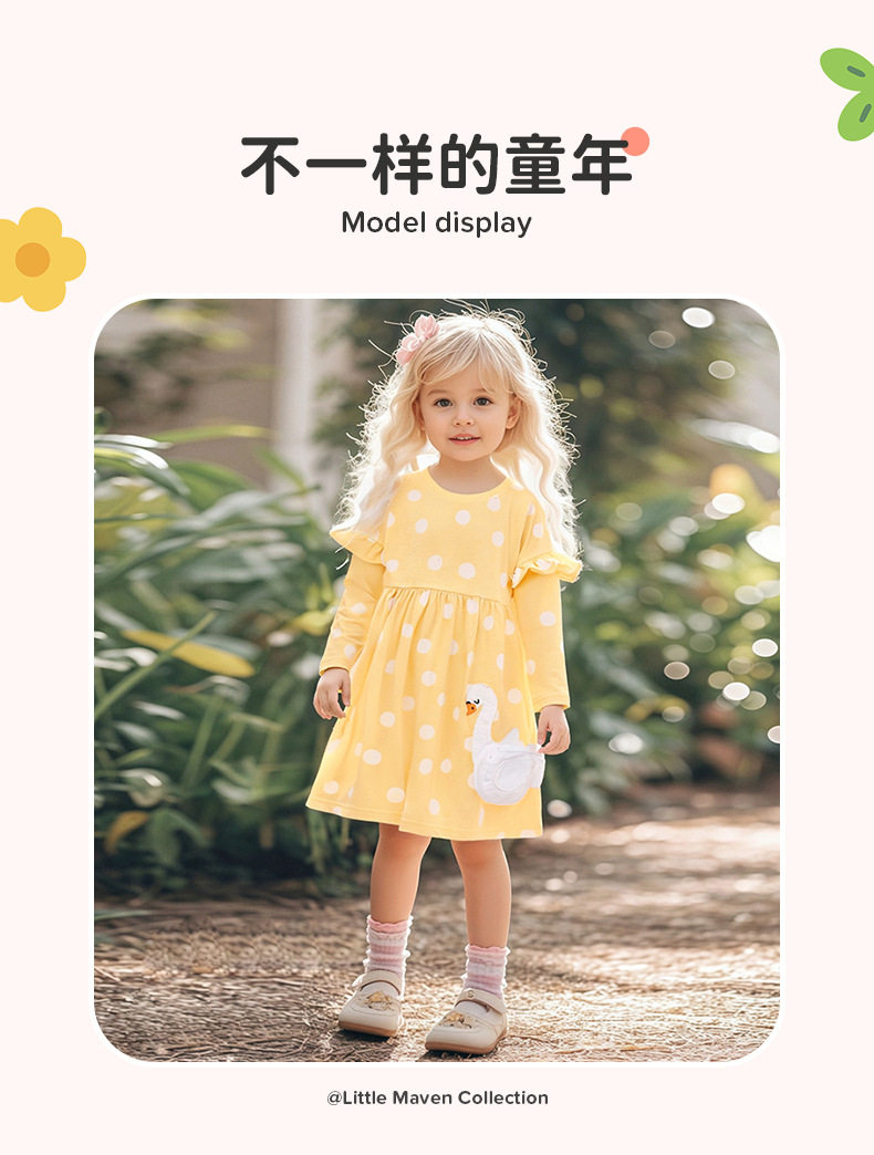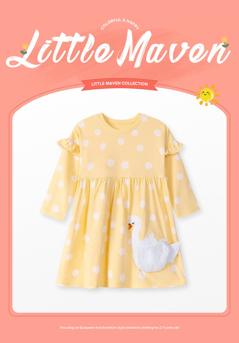 Kids' Dress Wholesale, Cartoon Autumn Girls' Dress, Cotton Kids' Skirt