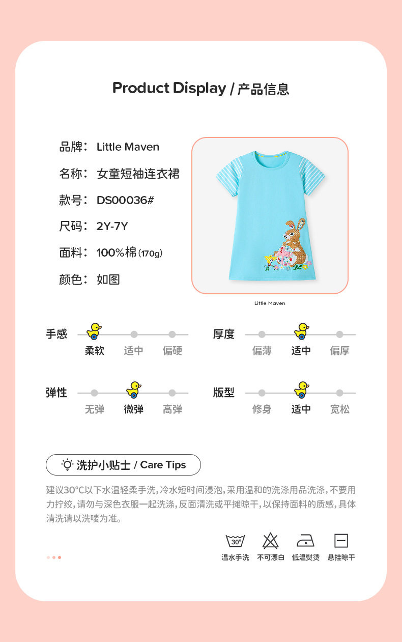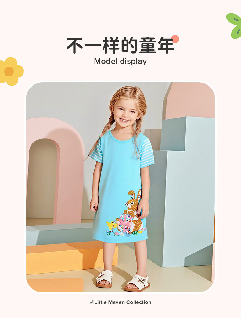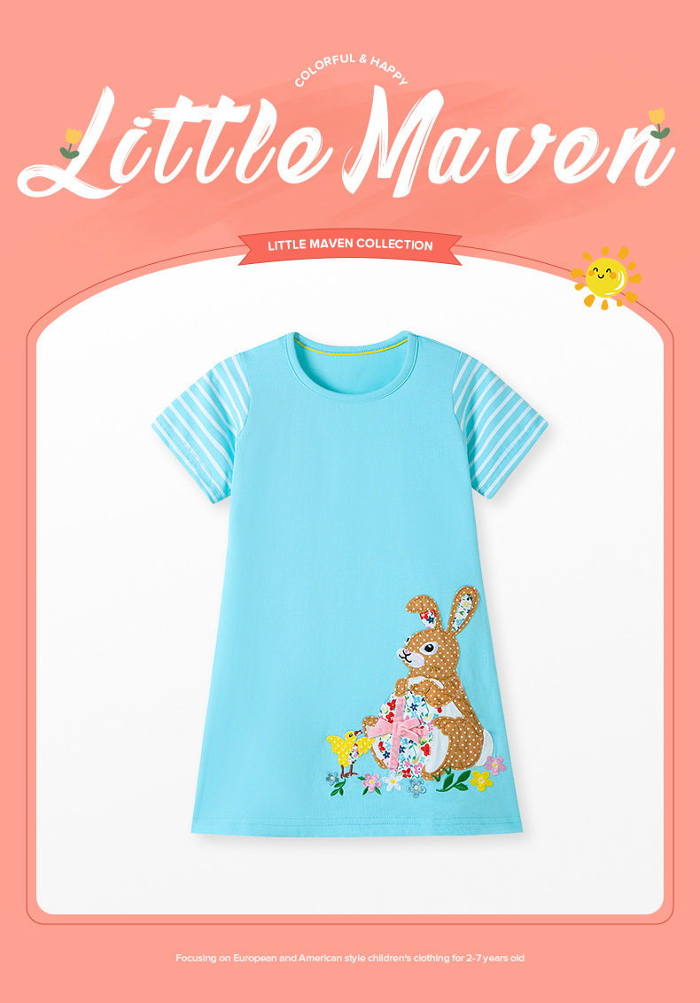 New Girls' Dress, Summer Short-sleeve Kids' Skirt, Applique Cartoon Kids' Dress