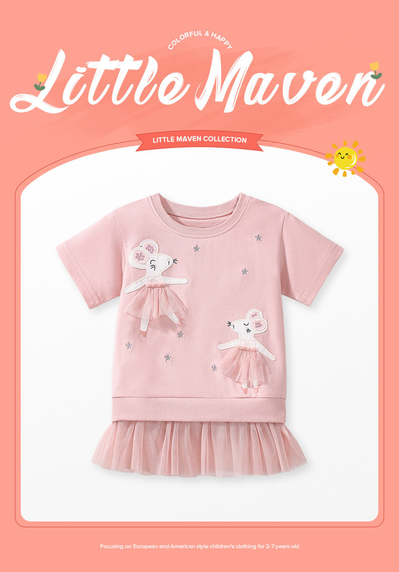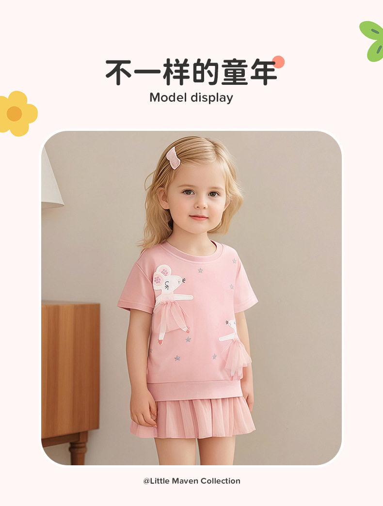 Girls' Summer Short-Sleeve T-Shirt Wholesale from Factory, Style Baby Top, Cartoon Cute Kids' Tee