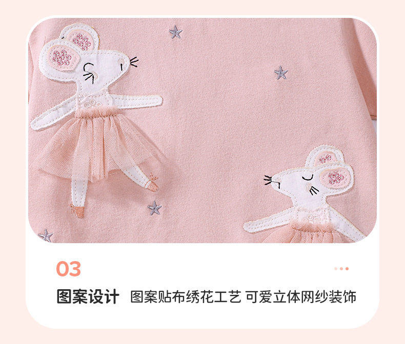 Girls' Cartoon Set, New Autumn Baby Mesh Patchwork Hoodie & Stacked Leggings Two-Piece Outfit