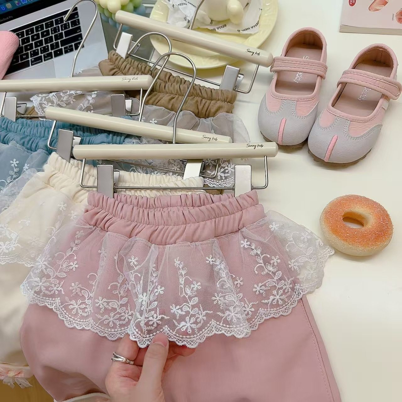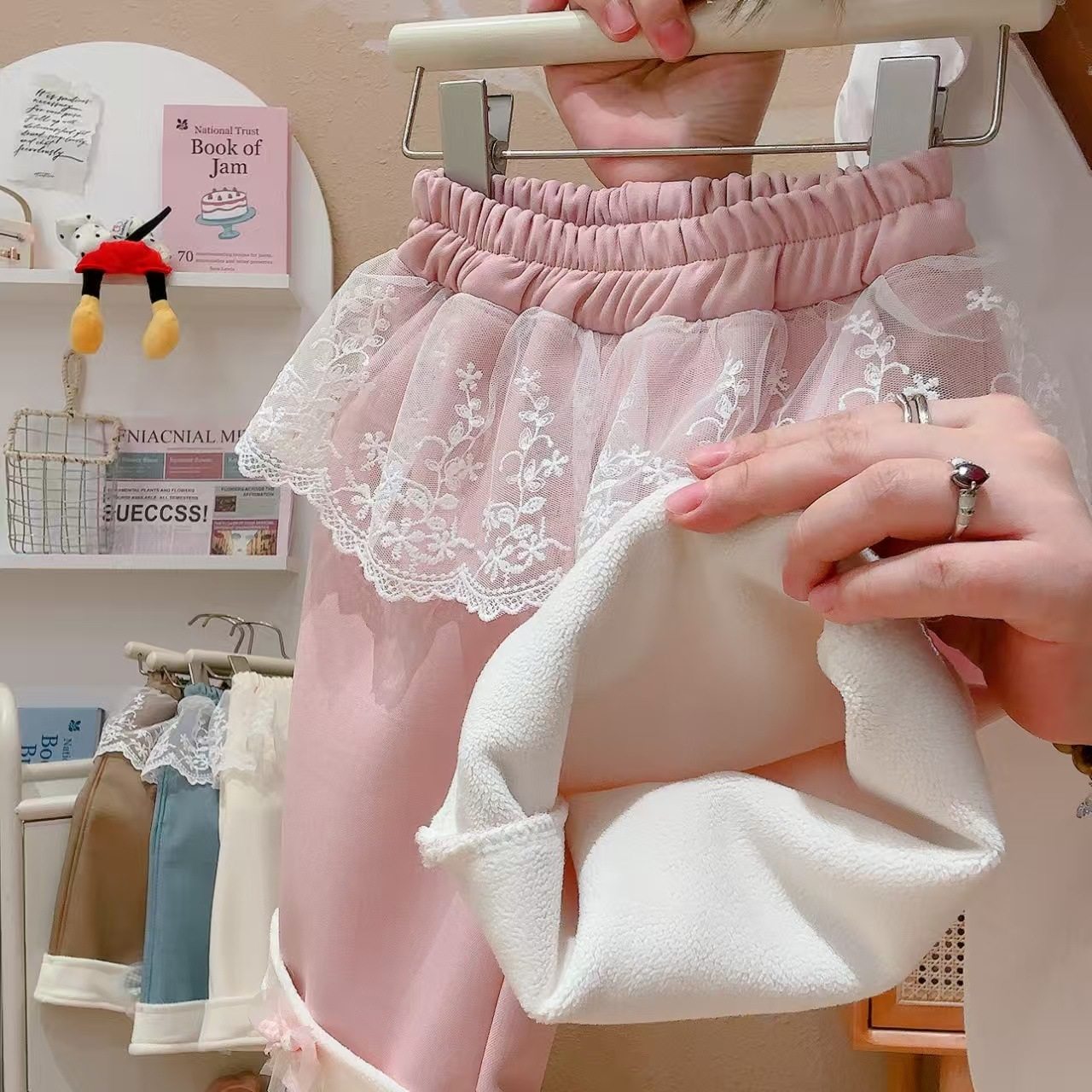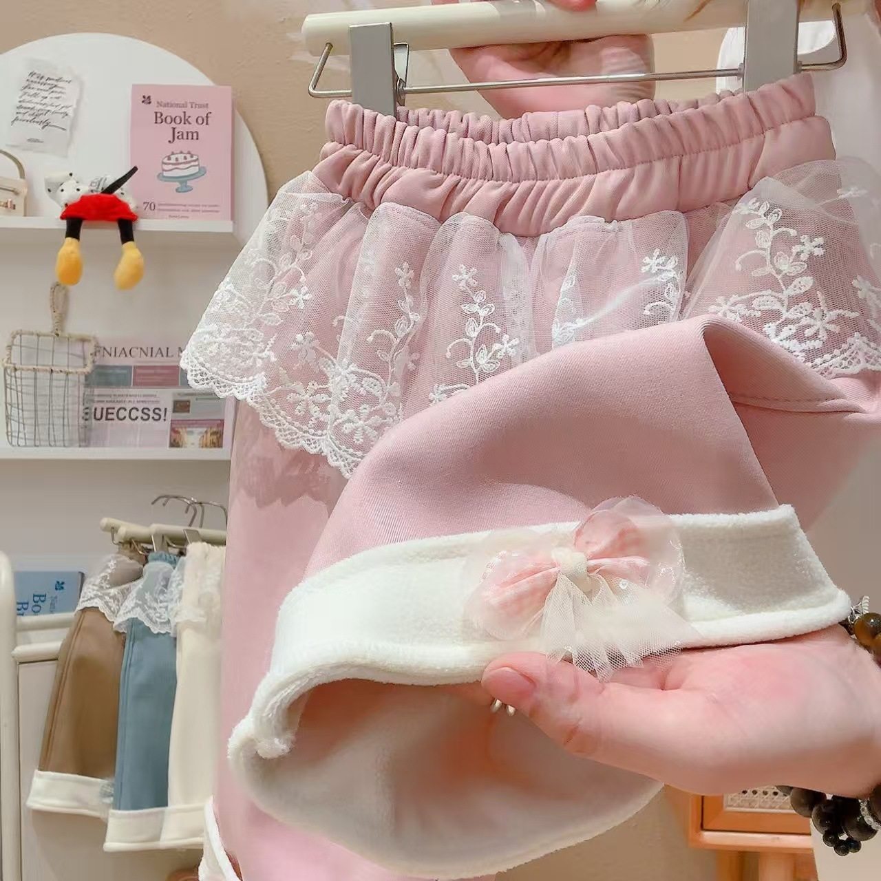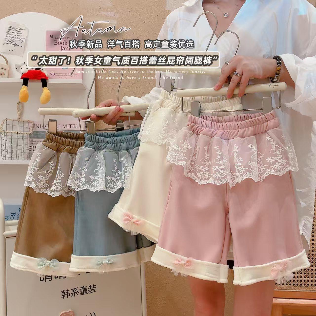 Children's Autumn & Winter Korean Style Wide-Leg Pants, Lace Casual Fake Skirt Hem Fleece-Lined Thickened Sweet Outerwear Trousers with Bow