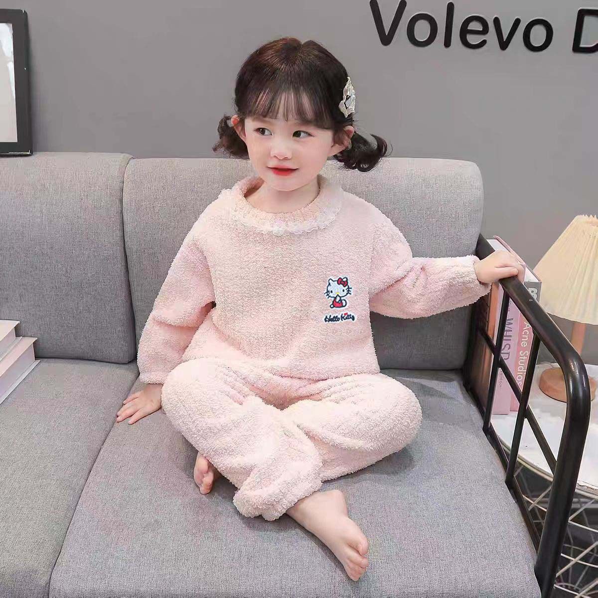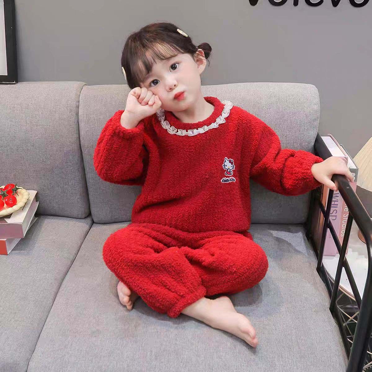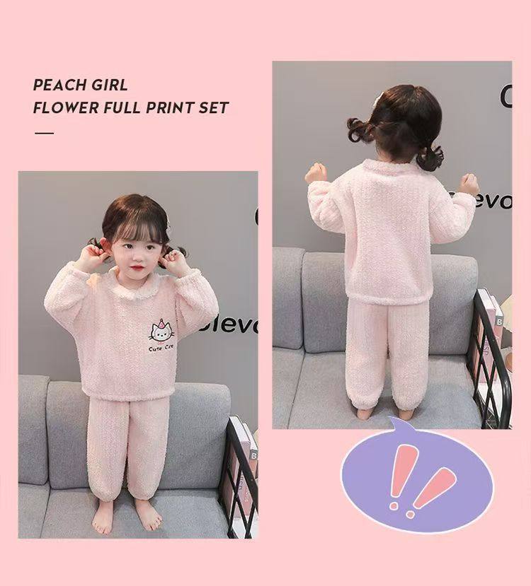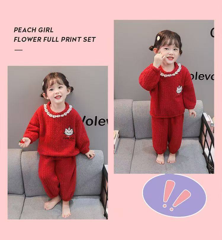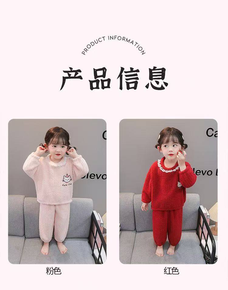 Set pigiama volant pizzo mezza pile bambine nuova inverno e autunno, pile corallo loungewear bambini